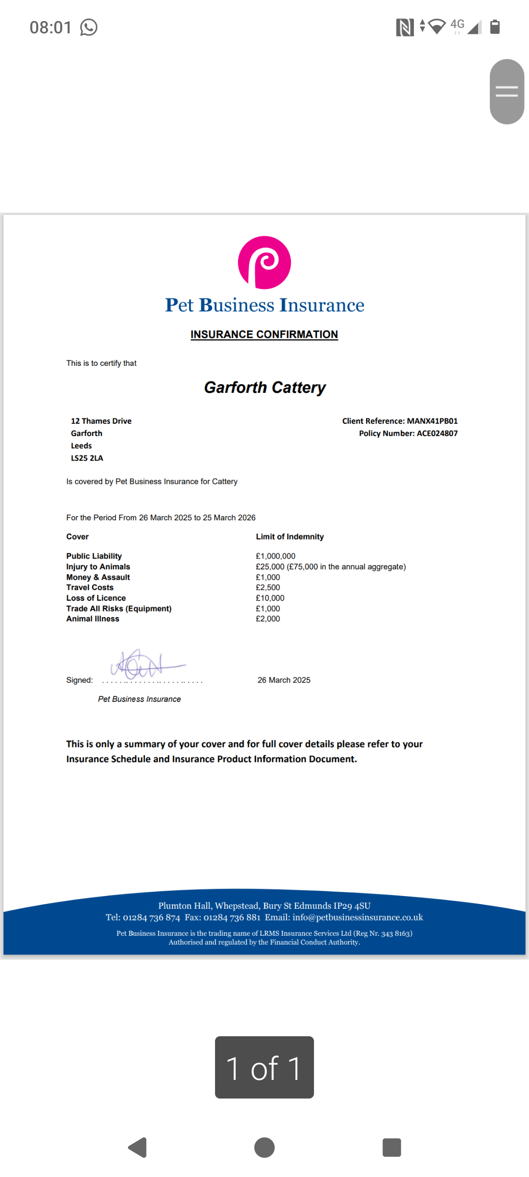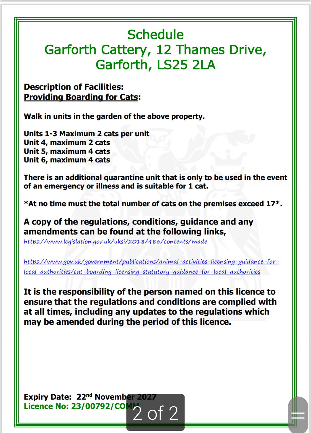 Although i have displayed opening hours above, this is not fixed its just ideal hours, i know what its like when all you want to do when you get back off your holiday is get your fury babies back home so for that reason i am flexible so do not hesitate to ask me, Thank you for your enquiry.